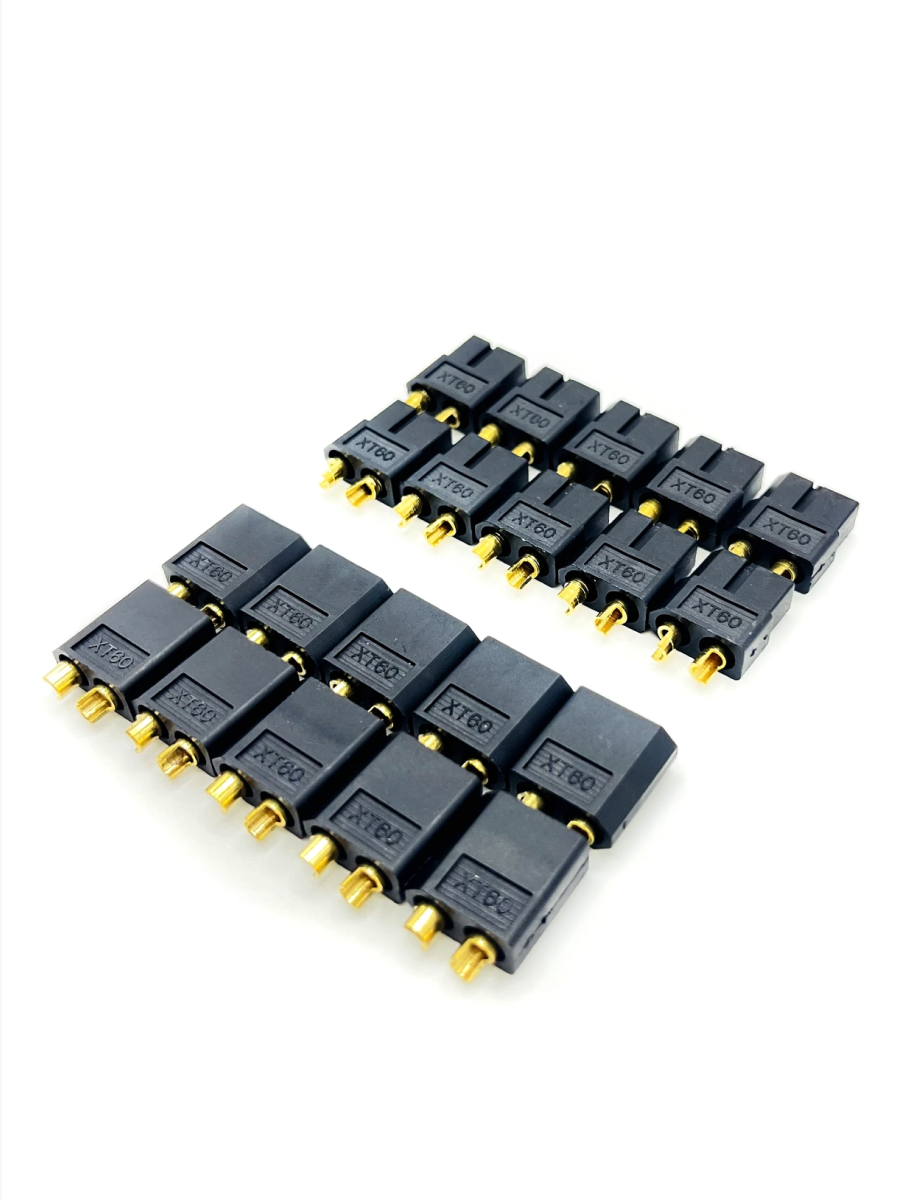 Применяются разъемы XT60 для подключения высоко-токовых аккумуляторов и других источников питания, фактически широко применяется в моделях на дистанционном управлении, гироскутерах, электросамокатах , квадрокоптерах , робототехнике и т.д.