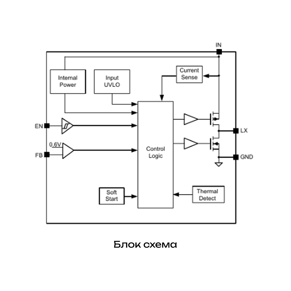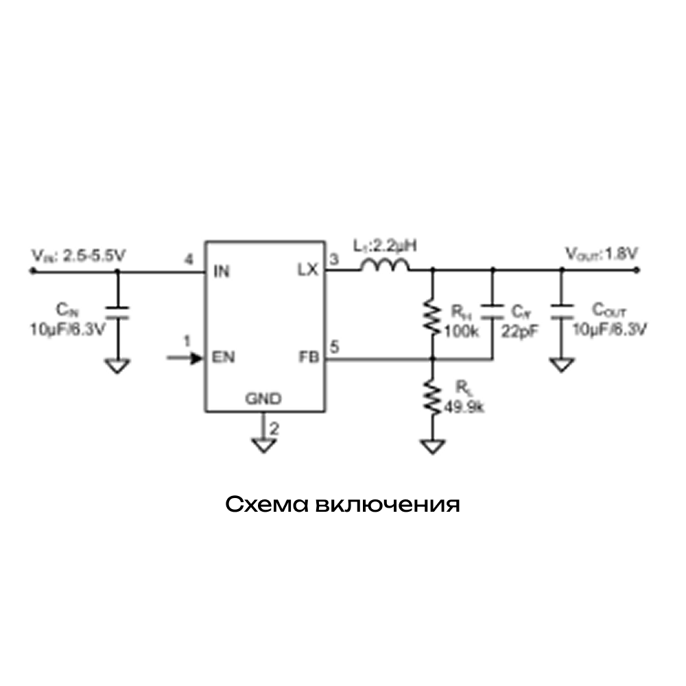 SM8081AAC — это высокоэффективный синхронный понижающий DC-DC преобразователь с частотой переключения 1,5 МГц, предназначенный для работы от одного литий-ионного аккумулятора. Он обеспечивает выходной ток до 1 А при входном напряжении 2,5–5,5 В и поддерживает регулировку выходного напряжения от 0,6 В. Микросхема отличается низким собственным потреблением (70 мкА в рабочем режиме, <1 мкА в режиме отключения), встроенными защитами (от короткого замыкания, перегрева, перенапряжения), а также поддерживает режим PFM для повышения эффективности при малых нагрузках. Выпускается в компактном корпусе SOT23-5.
